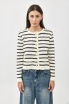 סריג קרדיגן פסים עם כפתורי זהב באורך המותן.